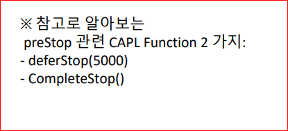 capl코드 복사on preStop { deeperStop(2000); // 2초 동안 정지 message myMessage = {0x123}; output(myMessage); }
